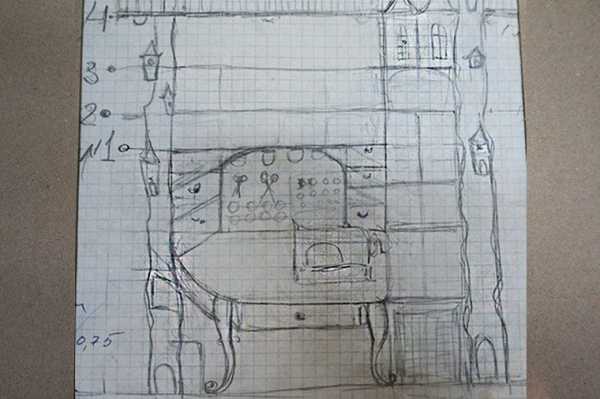 Не скажу что наброски были самые лучшие, но поскольку мы делали всё это с мужем нам они были понятны. На этом этапе вы делаете эскиз мастерской. Когда вы задумали сделать какую-то свою работу, вы перед этим создается эскиз, также и здесь.