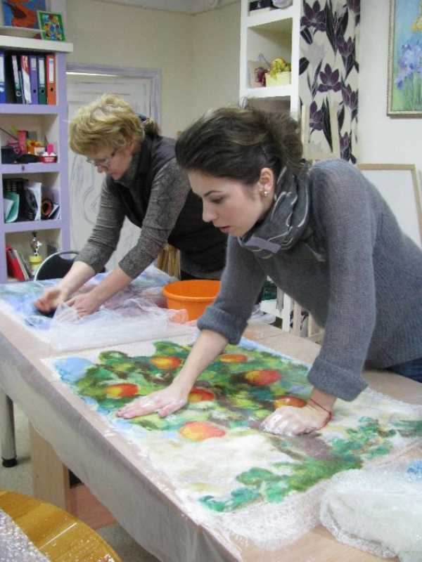 Денег на материалы много было не нужно. Материалы покупались под одно занятие. Даже краски для декупажа, акриловые, поначалу покупались в виде набора небольших тюбиков из 12 или 16 цветов. Их хватало ровно на один МК и все. То же самое с шерстью для валяния. Материалы для батика у меня, в основном, были, я все-таки им занимаюсь. Я не закупала ничего на год вперед. Между занятиями – неделя. Это срок, за который можно успеть подготовиться к следующему занятию. Все покупалось на одно занятие, что-то оставалось, что-то надо было покупать снова. Да, это не очень удобно, постоянно бегать и что-то подкупать, но зато вложения денег – небольшие. А для меня, повторюсь, было важно, чтобы дело с первых дней жило за счет себя самого. Все, что было заработано, тут же шло в дело.