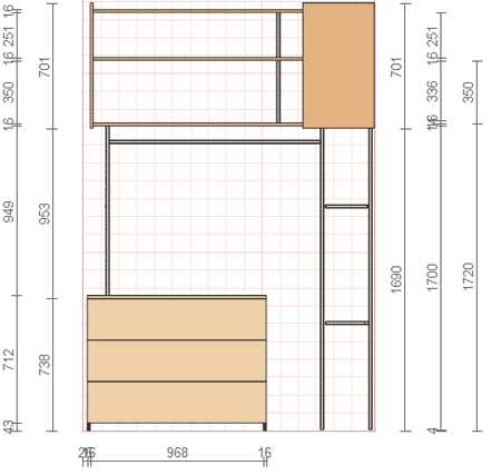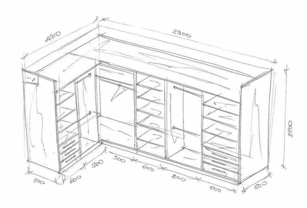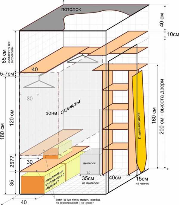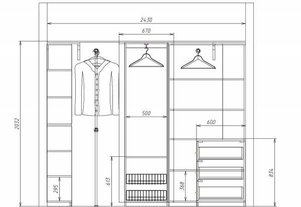 Перед началом сооружения гардероба рекомендуется составить его чертеж на бумаге, указав размеры всех элементов