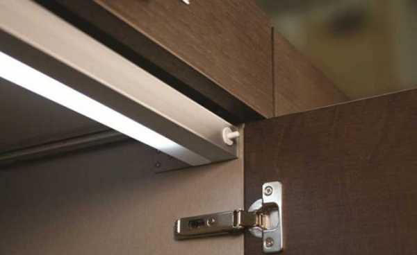 Один из способов установки светильников.Какие лампы использовать – это уже по желанию владельца, но подход должен быть следующим: больше света, сочетающегося с дневным. Это позволит всегда правильно подобрать одежду, в зависимости от условий ее ношения. Светильники могут включаться и от датчика движения. Тогда отпадает необходимость в установке других выключателей. Обычно, в таких помещениях часто забывают выключать свет, а вот датчик движения сделает это автоматически.