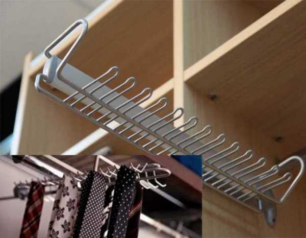 Конструкция хранения галстуков.Вешалки могут размещаться по-разному. Один из простых способов – это выдвижные кронштейны, по принципу хранения галстуков.