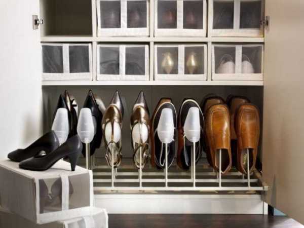 Например, может реально заинтересовать выдвижная система, где для хранения обуви используются штыри, закрепленные на подвижной основе. Это удобно, да и компактно, что подходит для наших условий.