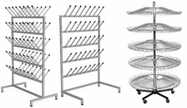 Современная, удобная модульная система.Стойки могут быть и прямоугольного сечения, в которых с двух сторон сформированы пазы. С помощью специальных зажимов, в этих пазах осуществляется крепление различных комплектующих.