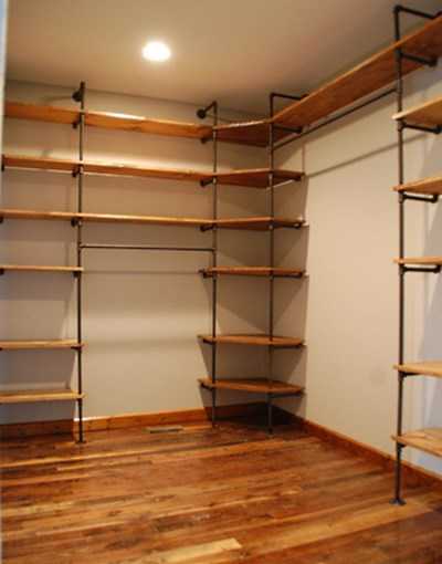 При малых площадях не имеет смысла делать или заказывать в гардеробную мебель из ДСП, МДФ или дерева, так как она занимает достаточно много свободного пространства. Кроме этого, после ее установки что-то переделать уже нереально.
