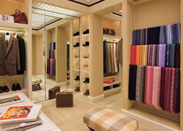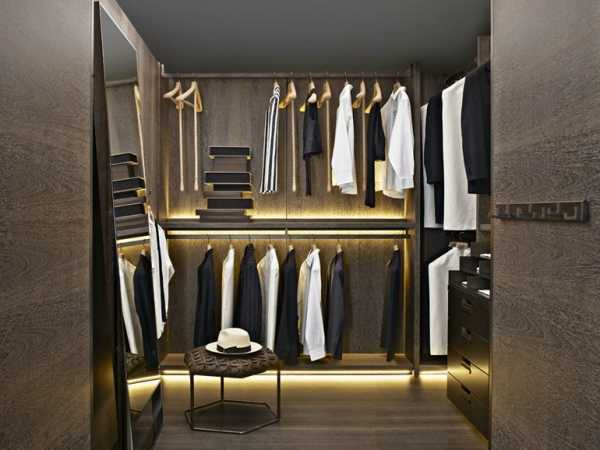 Внутреннее обустройство гардеробной тоже имеет свои различные варианты, идеи и схемы.