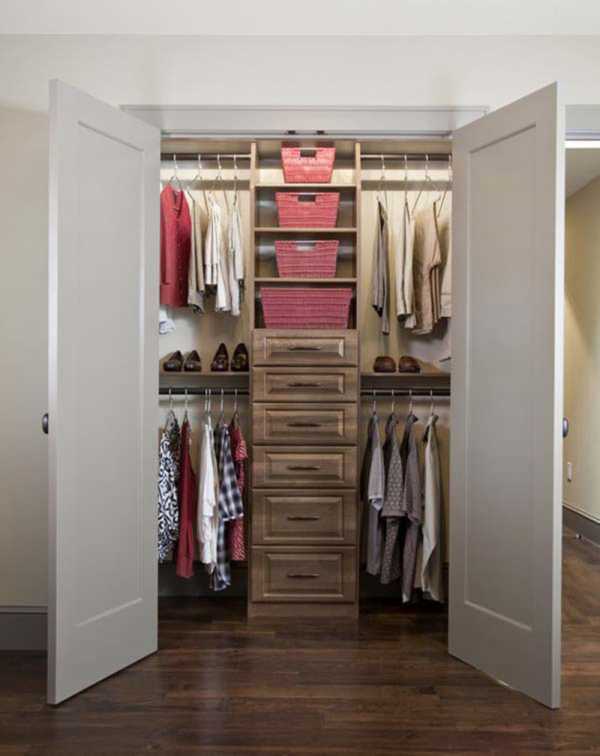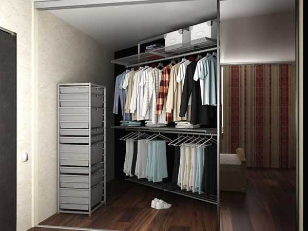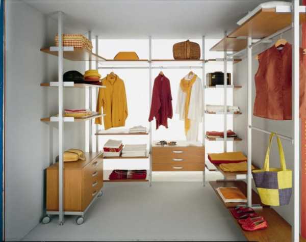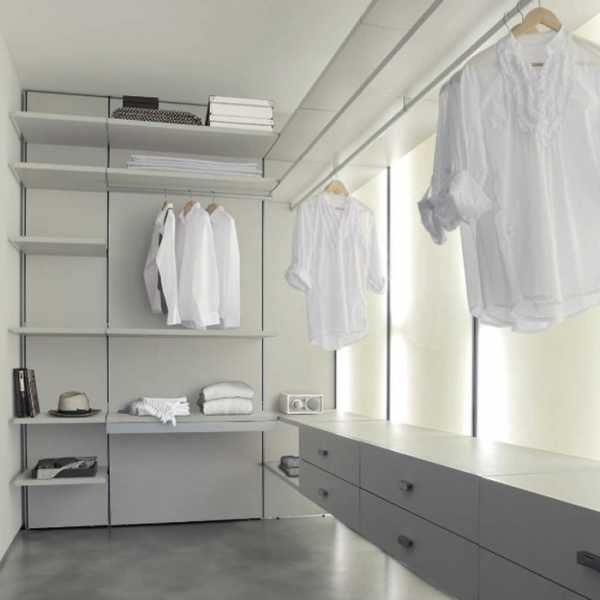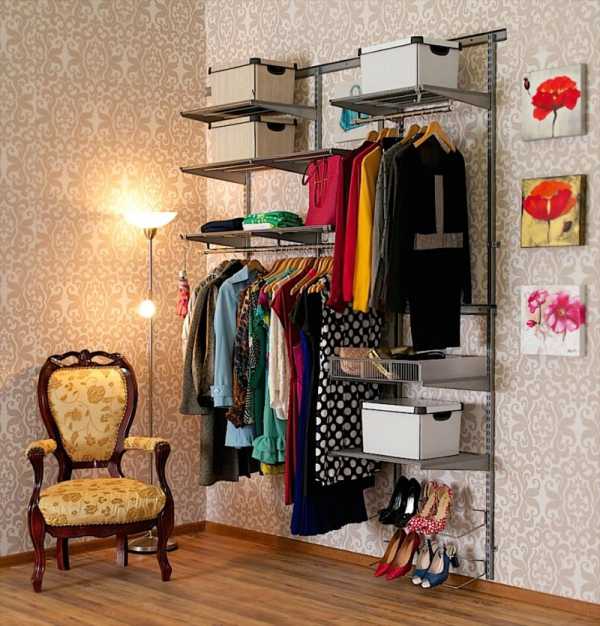 Оптимальным решением для каждой гардеробной считается такой специальный стеллаж. Он прекрасно вписывается даже в маленькую комнату, а также собрать его не составит труда. Он вовсе может быть сделан самостоятельно из ДСП или других доступных и простых в обработке материалов. Имеется множество фотографий с этой конструкцией, поэтому можно убедиться в привлекательном внешнем виде таких гардеробных.