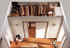 Для обустройства гардеробной не требуется большое жилищное пространство. Для ее организации достаточно выделить 1,5-2,0 метра квадратных жилой площади. Но зато всегда можно будет легко и быстро найти нужную одежду, так как она находится в одном месте и лежит в определенных точках шкафа.