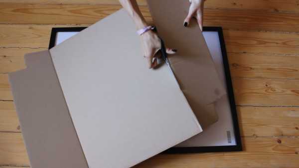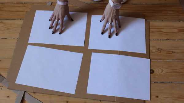 Для создания этого панно я взяла плотный картон. (Как лайфхак могу предложить вам попросить картон от чипсов в магазине — чипсы обычно привозят в картонных коробках, которые проложены вот таким замечательным плоским картоном). Затем я отрезала от него «уши» и измерила его в листах А 4 — трафарет будет в 4 листа А 4.