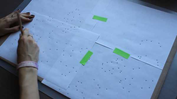 С помощью карандаша я протыкаю трафарет на картоне там, где звезды, тем самым перевожу изображение.