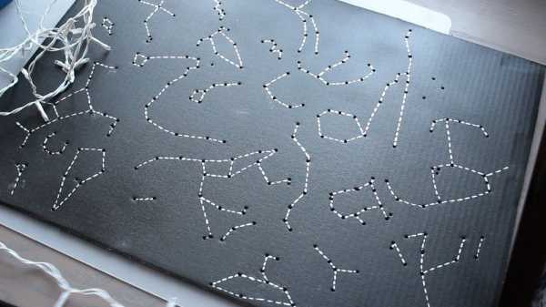 При желании можно подписать звезды и созвездия, и изучать их с детьми, например.