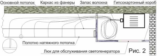 Вариант натяжного потолка с оптоволокном и светогенератором