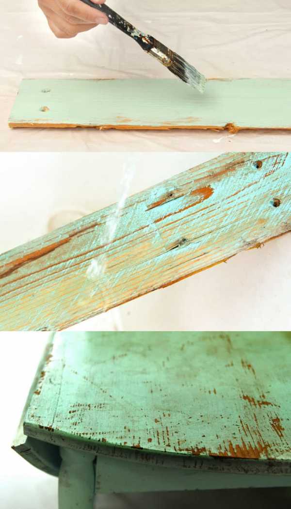 СОВЕТ: Если вы красите мебель, то соскребите краску на углах и краях, ведь именно там она чаще всего слазит в процессе использования. Таким образом, эффект старины будет выглядеть более натурально.