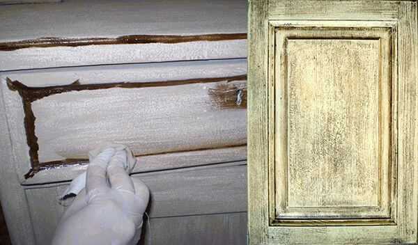 Это универсальная техника, которая помогает придать древесине или деревянной мебели старинный вид. Ее можно использовать как на необработанном дереве, так и на уже окрашенной древесине и мебели. Подходит для покраски в один или несколько слоев.