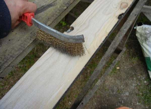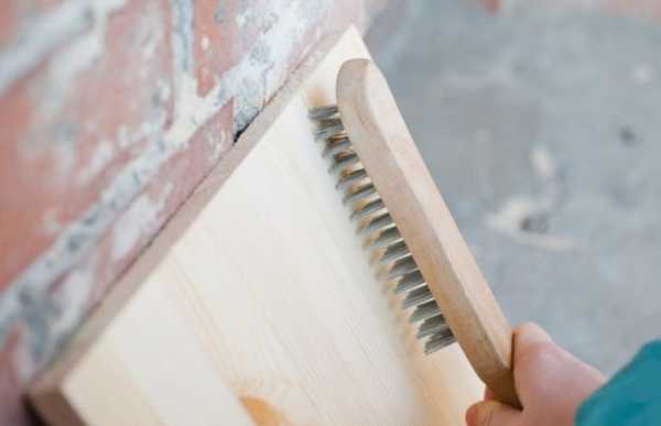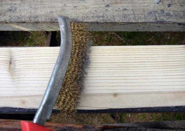 Использование жесткой металлической щетки с ручкой является наиболее простым способом состаривания древесины