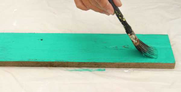 - Окуните конец деревянного бруска в краску и проведите ним вдоль окрашиваемой поверхности.