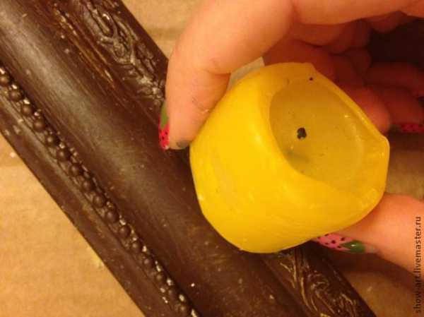 3. Далее я взяла свечу и начала натирать ею воском нашу раму в хаотичном порядке: