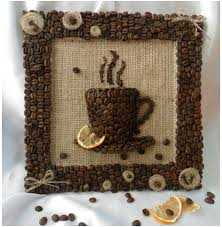 А так выглядят фоторамки, украшенные узорами из зерен кофе: