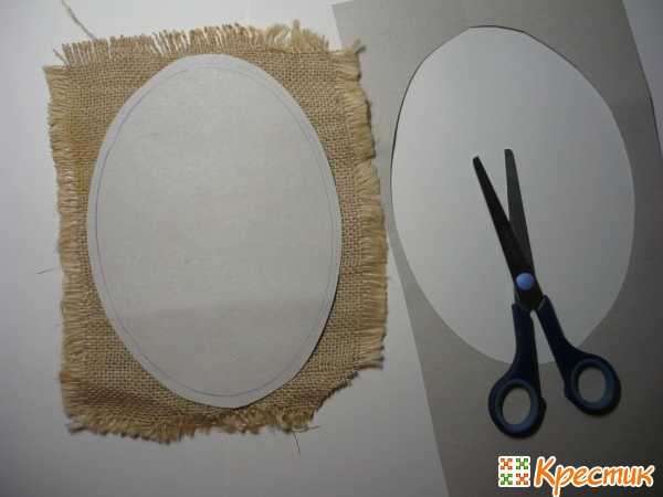 Из картона вырезаем овальную основу, на которую затем приклеим ткань.