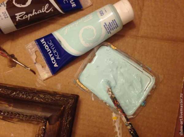 — акрил коричневый, акрил цветной (в данном случае у меня цвет «Тиффани»)