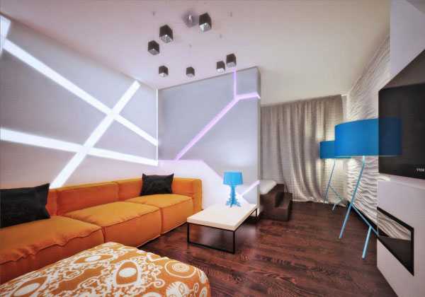 Красивый и необычный дизайн комнаты будет достигнут, если в интерьере применить необычные решения зонирования: