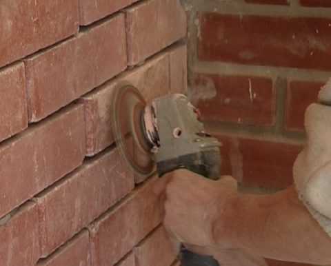 Болгарка со шлифовальным кругом – тоже вариант- Устройство сколов и щербин. Их можно делать по краям и углам кирпича или на его гранях в хаотичном порядке. Инструменты – зубило и молоток, перфоратор.
