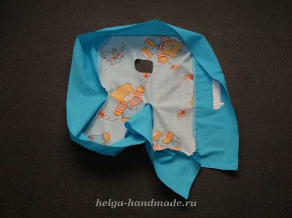 - Скрепить булавками или аккуратно сметать детали, оставляя в задней нижней части место для вкладывания «начинки».