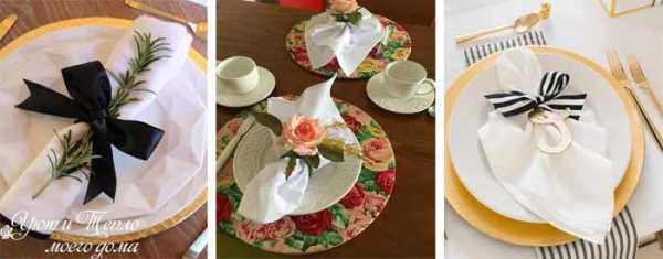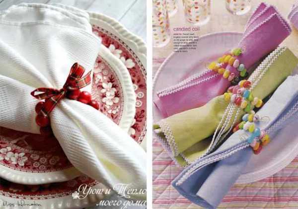 Глядя на эти картинки, можно сделать настольные композиции из цветов и свечей, интересно сложить салфетки или смастерить оригинальные держатели для них.
