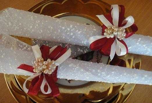 Невероятно красивыми и изящными получаются кольца для салфеток из лент. Милые бантики придают романтичности.