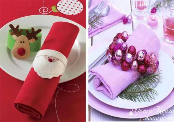 Кольца для салфеток новогодние своими руками можно украсить еловыми веточками, елочными игрушками, сделать сказочные фигурки из фетра.