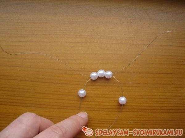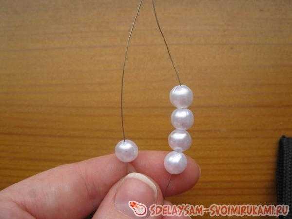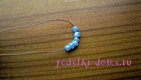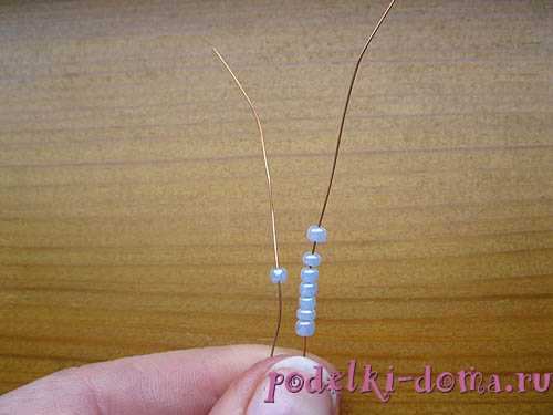 Нанизываем на проволочку шесть бисеринок и располагаем их так, чтобы они находились в центре.