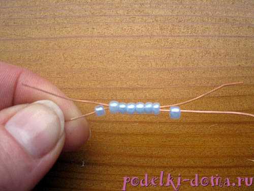 На один конец нанизываем еще семь бисеринок, а на второй — одну.
