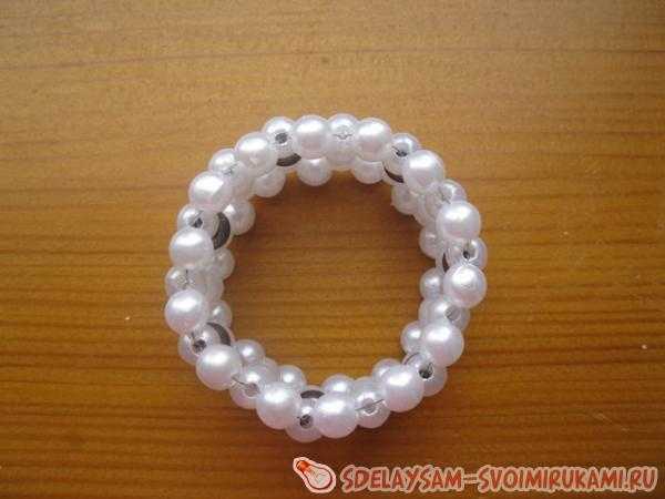 Теперь тянем за оба кончика, и у нас бусинки соединяются в колечко.