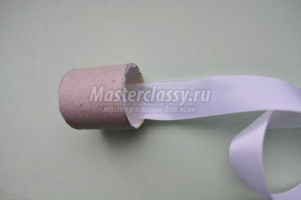 С внутренней стороны приклеиваем кончик широкой ленты и даем высохнуть.