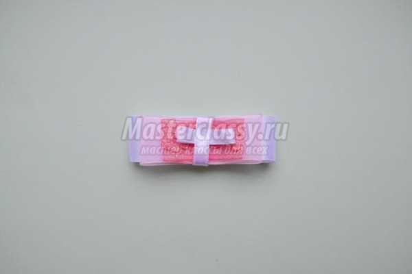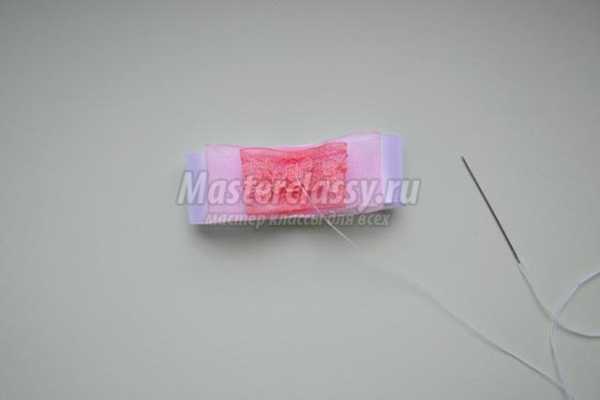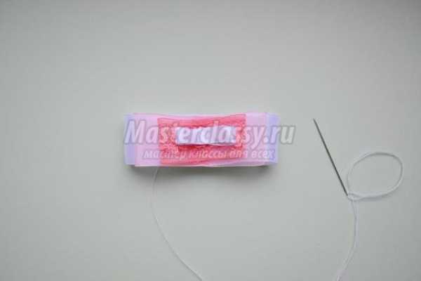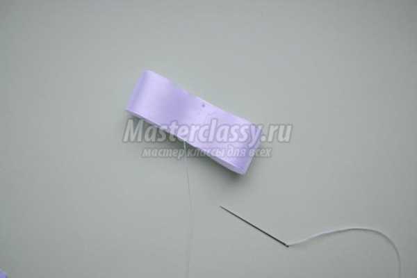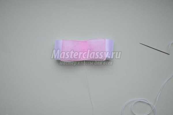 Второй узкой лентой оборачиваем бантик по центру и сшиваем посередине.