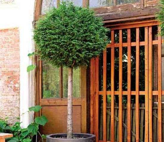 - Великолепным экземпляром можно назвать тую. Заграницей научились из штамба туи выстригать разные формы. Наши любители украшать необычными деревьями свои дома переняли опыт зарубежных дизайнеров и, используя свойство туи медленно расти, начинают высаживать ее в красивых горшках с последующей пересадкой в уже облагороженные ландшафтные композиции.