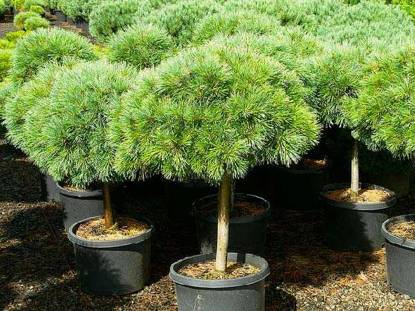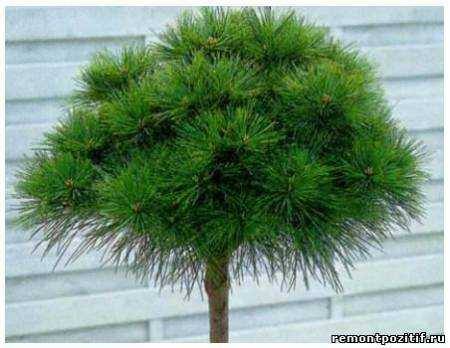 - По краям участка специалисты ландшафта советуют рассаживать сосновые штамбы. Преимущества этих сортов в нечастых поливах и несложности ухода. Наибольшим спросом пользуется штамб сосны горной благодаря неординарным качествам изменения цвета хвои в течение года. Летом она ярко-зеленая, осенью ярко-желтая, зимой медная, а весной золотистая. Такие изменения палитры придают участку необычности в любое время года.
