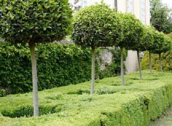Миниатюрные штамбы — тренд садовой моды. Но всю их красоту только подчеркнет правильно выбранный подлесок. Его задача — скрыть почву возле ножки. Изысканно смотрится подлесок, повторяющий окрас листочков или цветков самого штамбового растения. Если он будет перекликаться с формой листочков или соцветий, будет изумительный результат. Великолепным украшением сада будет и эта красавица.Бирючины обыкновенной