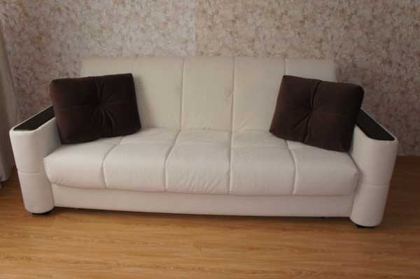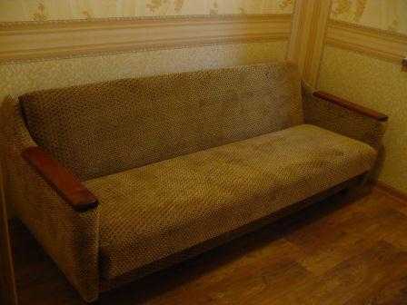 Как перетянуть диван своими руками, рассмотрим на конкретном примере. Для наглядности возьмём маленький диванчик с возможностью трансформации. Такие диванчики, обычно, есть (или были) в каждой семье.