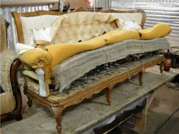 - Полное удаление изношенной обивки, а иногда и наполнителя;