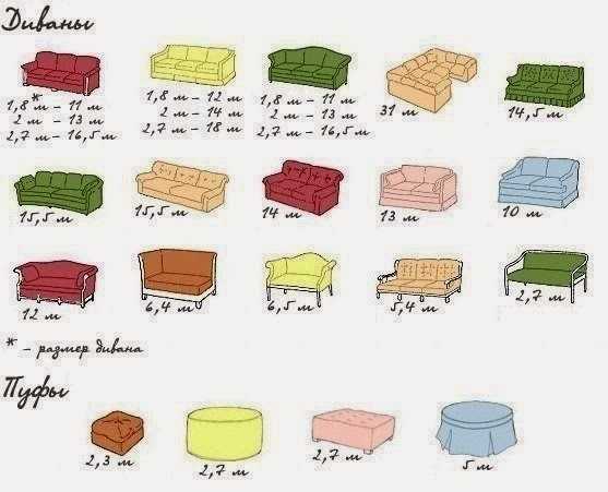 Воспользовавшись данной таблицей, вы приблизительно будете понимать, какой метраж ткани вам понадобится под ваш тип дивана.