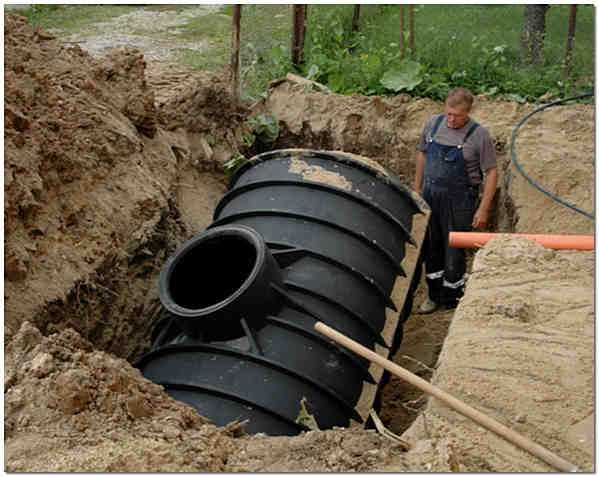 - Герметичная яма, чтобы нечистоты не впитывались в грунт. Можно заливать яму из бетона, выполнять ее из кирпича и оштукатуривать, а можно использовать готовые пластиковые емкости – кессоны.