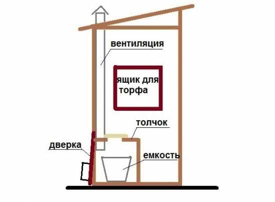 В остальное время избавиться от неприятных запахов помогает торф или опилки: после использования туалета нужно посыпать ими нечистоты. Эта разновидность туалета подойдет, если по санитарным соображениям невозможно выкопать выгребную яму.