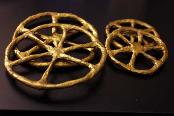 Сделать колеса из проволоки сложнее, но они прочные и долго прослужат. После того, как вы сплели из проволоки колеса, можете обернуть ее фольгой для красоты.