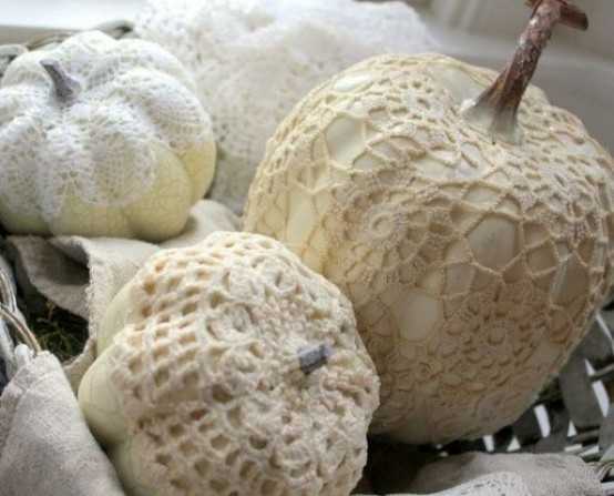 7. Тыквы винтажные : кружева, вязаные салфетки, мешковина…