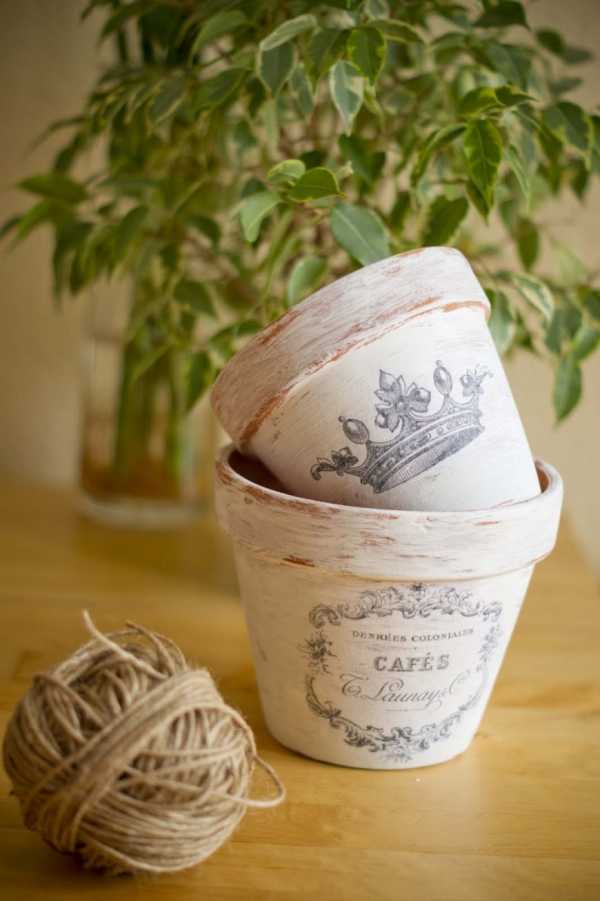 18. Милый декор в «сельском» стиле добавить дому непринужденности и уюта. Таким украшением цветочным горшков можно заняться с детьми.
