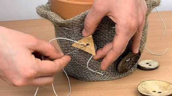 Мешковина – еще она находка для тех, чьим хобби является разведение комнатных растений. Пробуйте разные варианты, украшайте полученную поделку искусственными цветами, лентами, камнями.