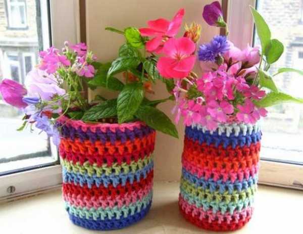 Вязаный декор сейчас очень популярен. И, конечно же, цветочные горшки не исключение!