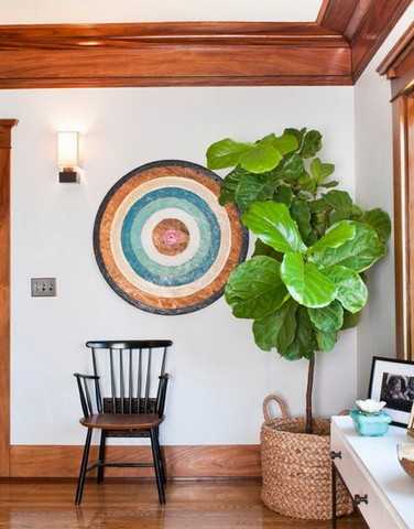 Интерьер классического, делового стиля станет более красочным, если его дополнить цветочными горшочками декорированными нитками или веревочками. Для этого емкость смазывается клеем, и обвязывается нитями, или веревочками, при этом нитки должны расположится максимально плотно между собой. При желании можно изделие украсить пуговичками, бантиками или бусинками.