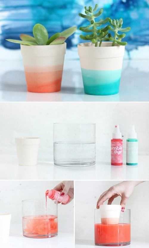 5. Декорирование цветочных горшков своими руками при помощи воды и красок в стиле акварельного омбре.
