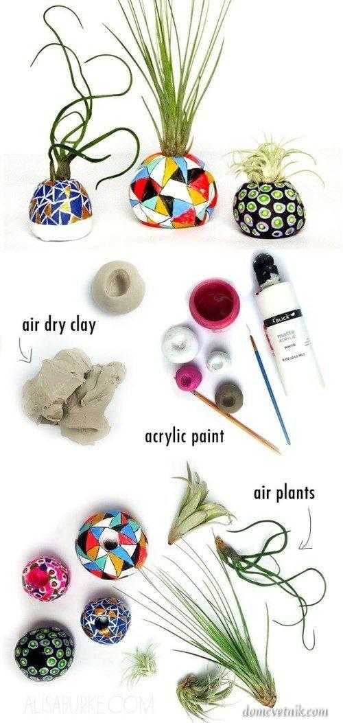 8. Слепленные своими руками из глины или другого материала кашпо отлично подойдут для суккулентов. Яркая и необычная раскраска сделает их эксклюзивными.